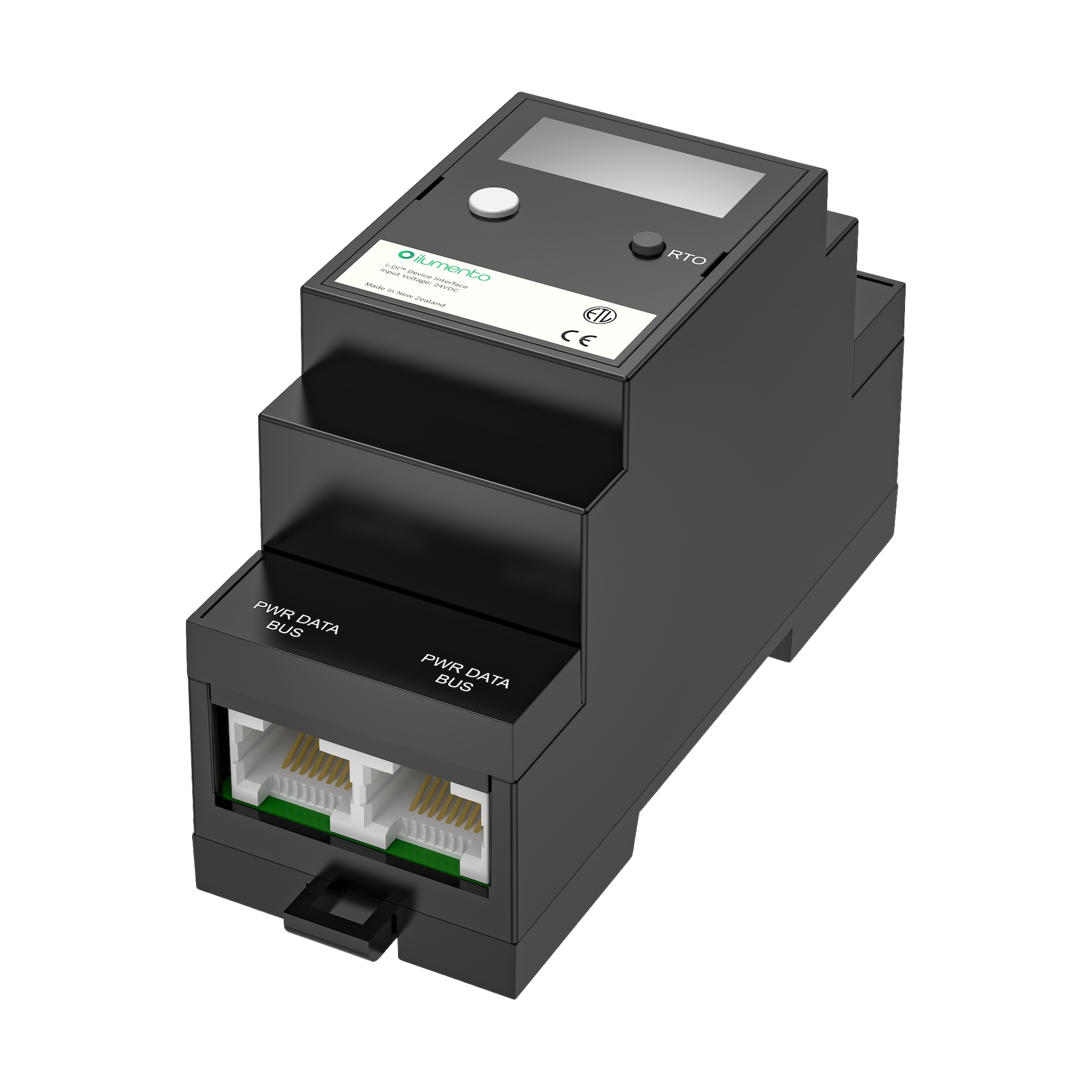 The Ilumento i-DI is an intelligent communication gateway that converts power and data from the i-PDB350 into a CAT5e cable. This allows for connecting keypads, sensors, and other future devices outside the cabinet.